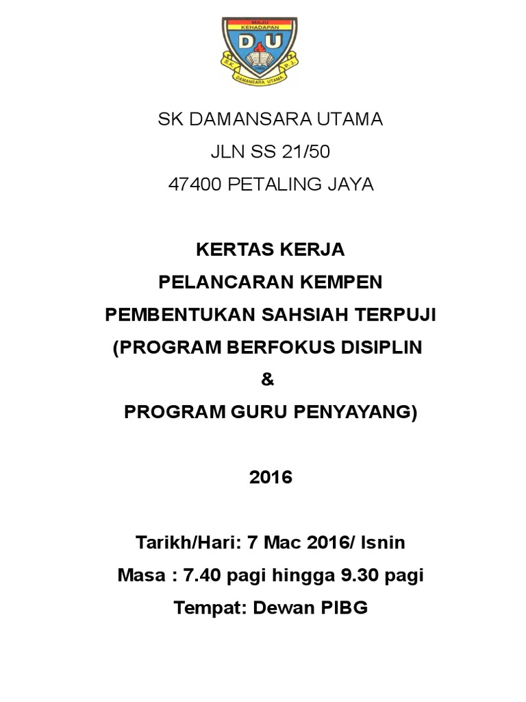 Related : Kertas Kerja Program Selepas Pt3 - Kertas kerja program selepas peperiksaan pt3 2016..